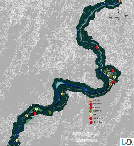 入口服務區:設置游客服務中心、度假酒店、停車場以及相應公共服務設施,打造龍津溪地的門戶形象。